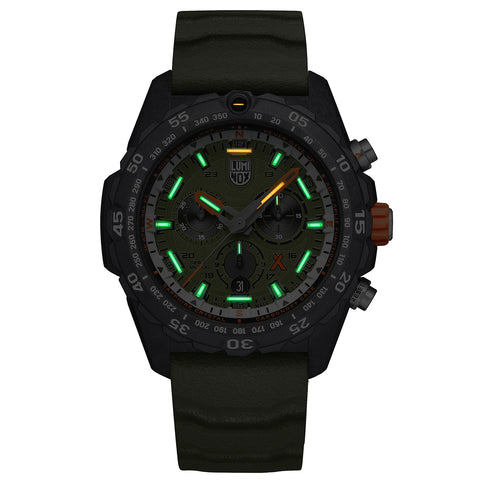 Crafted with a 45mm CARBONOX™+ case and sapphire crystal with anti-reflective coating, the 3741.OLIVE delivers extreme robustness while remaining incredibly lightweight. The olive dial is accented by silver hour and minute hands for enhanced legibility, supported by 18 Luminox Light Technology tubes that provide continuous visibility for up to 25 years in any lighting condition.